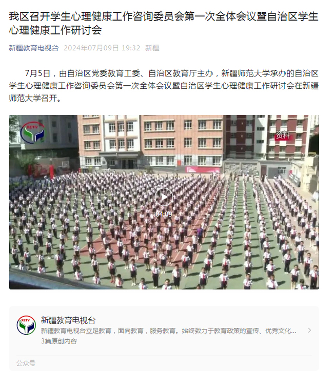 新疆教育电视台 | 我区召开学生心理健康工作咨询委员会第一次全体会议暨自...