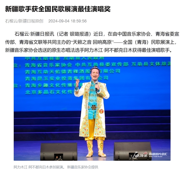 石榴云/新疆日报丨新疆歌手获全国民歌展演最佳演唱奖