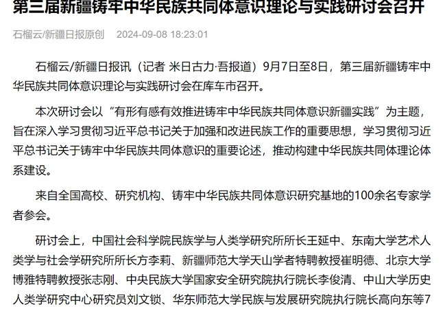 石榴云/新疆日报讯(记者 米日古力·吾报道)9月7日至8日,第三届新疆铸牢中华民族共同体意识理论与实践研讨...