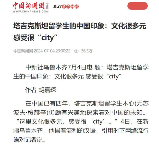 中国新闻网 | 塔吉克斯坦留学生的中国印象:文化很多元 感受很“city”