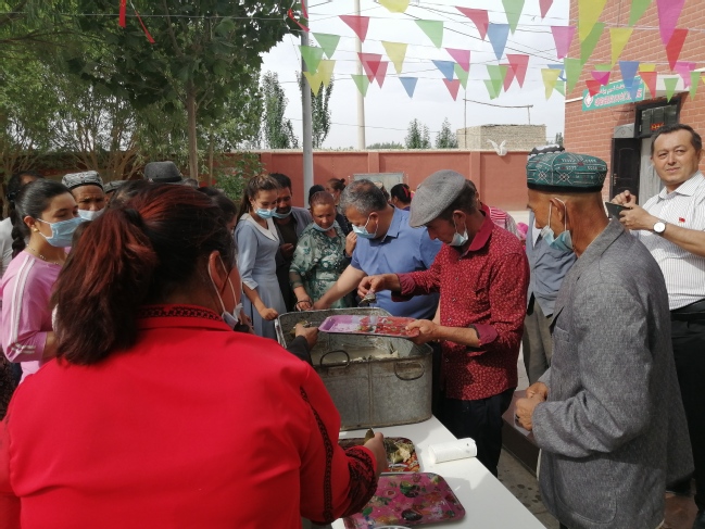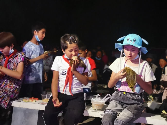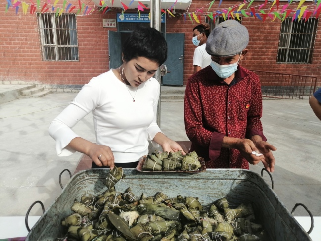 在座的干部群众一起品尝工作队精心准备的粽子,并共同欣赏了《爱我中华》《你笑起来真好看》《新疆巴郎》等歌舞节目,大家在其乐融融的气氛中欢度佳节,品尝幸福生活的甘甜滋味,共话乡村振兴的美好未来。活动在欢快的麦西来甫中结束。