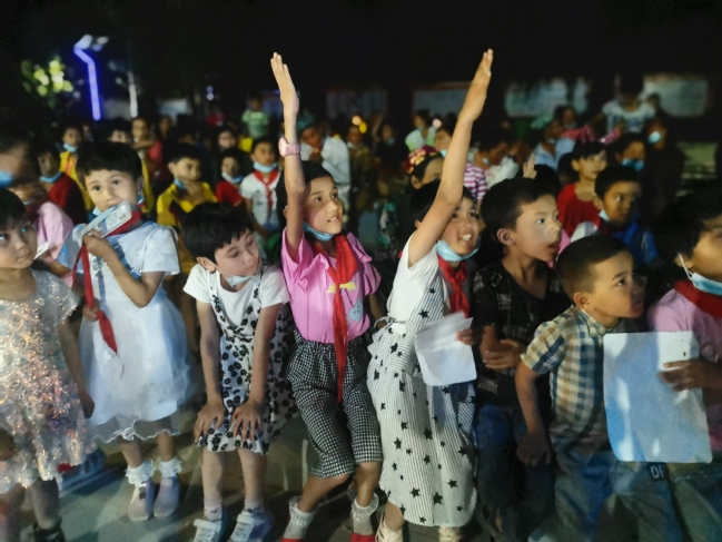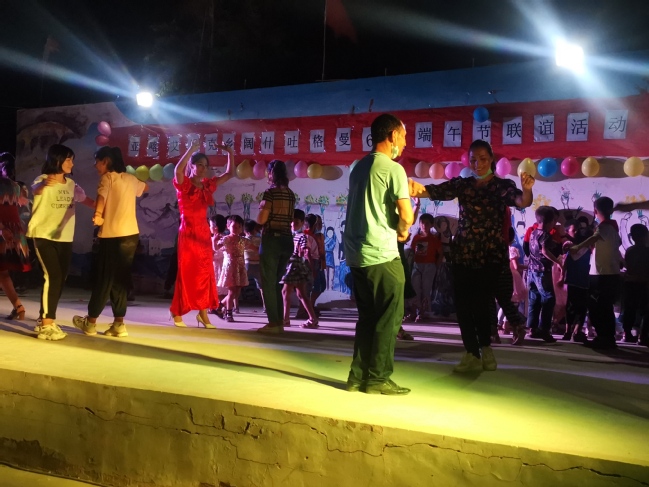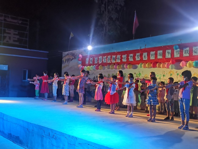 当晚,全村40多个学生上台表演了中国少年先锋队队歌《我们是共产主义接班人》、歌舞《你笑起来真好看》《听我说谢谢你》等,村民们也跳起了喜爱的歌舞和欢快的麦西来甫,一同迎接端午节的到来。