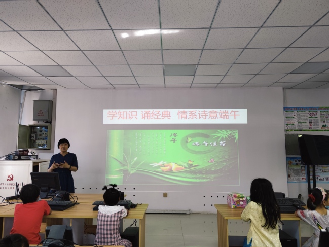 在悠扬的乐曲声中,组丽胡玛·阿卜迪热伊木等3名学生为大家吟诵讲解了精心准备的《浣溪沙·端午》《端午日赐衣》《渔家傲·五月榴花妖艳烘》等脍炙人口的端午诗词,在场的孩子们被这些意境悠远、文字优美、内涵深刻的诗词深深打动,啧啧赞叹,并表示要向她们学习,多背诵古诗词,感受博大精深的中国文化。