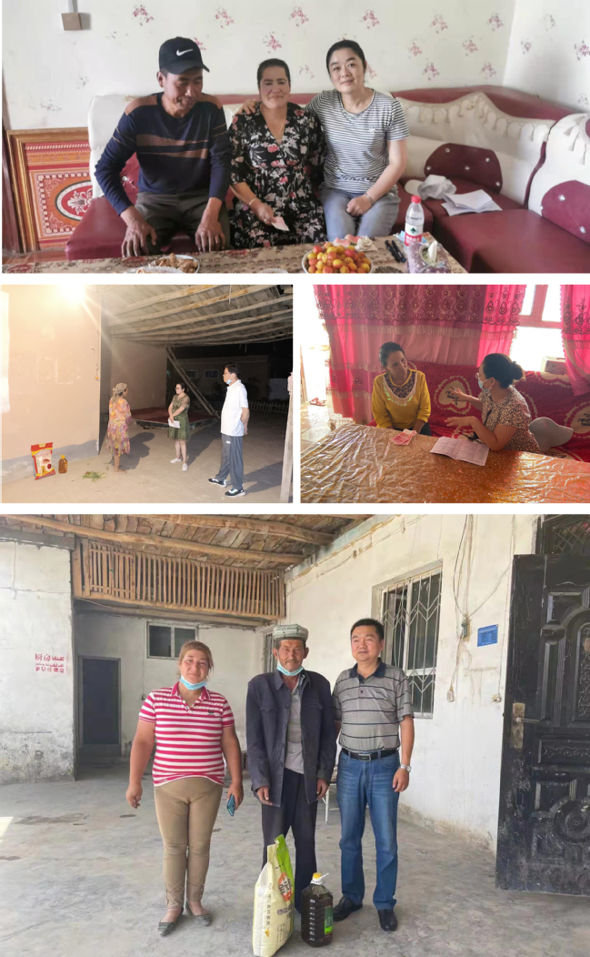“三帮”送温暖。帮干农活。学校办公室吴峰、纪委阿力太、后勤服务中心赵成喜等干部顶着炎炎烈日,与村民一起下地,从事田间除草、菜地浇水、采摘万寿菊等劳动。农民们纷纷表示,有了师大结亲干部实实在在的帮忙,让他们省劲不少,速度也加快了,真是太高兴了;帮卫生清理。研究生处关文军副处长、党委办公室詹林主动帮助亲戚打扫庭院和屋内卫生,清理“垃圾死角”,麦麦提·艾拜和耶合亚·赛来觉得结亲干部不见外,心里暖暖的;帮增收致富。学生处黄林辉帮助亲戚阿卜杜克热木·艾麦尔销售2000元的西梅,基建处副处长杜战明成功鼓励亲戚艾肯·扎伊提及妻子前往喀什市务工,结亲干部真心实意出点子,想方设法帮助增产增收,村民心里说不出的幸福和满足。