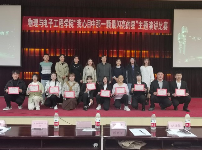 为庆祝伟大祖国72周年华诞,弘扬爱国主义精神,深入贯彻落实学校党委关于加强大学生思想政治工作和德智体美劳全面发展工作要求,不断提高“三强班级”“三好宿舍”建设成效,物理与电子工程学院于10月20日20时在昆仑校区国教楼一楼报告厅举办新生入学教育系列主题活动之“我心目中最闪亮的那一颗星”主题演讲比赛。物理与电子工程学院党委书记谈爱民、党委副书记阿不都卡德尔·艾买尔、学院辅导员及学业班主任等担任评委。经各班级团支部初赛选拔的11名选手参加比赛。
