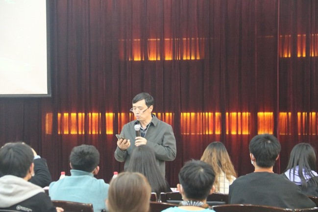 谈爱民致辞并带领师生学习习近平总书记重要讲话,要求同学们增强做中国人的志气、骨气、底气,不负时代,不负韶华,不负党和人民的殷切期望。随后,各选手围绕主题讲述为我国科学事业而献身的英雄事迹。21-2班的尹富豪同学讲述科学家邓稼先为祖国,为中华民族,隐姓埋名31年,面对重重困难,无所畏惧,勇往直前,以身许国,彰显梅风傲骨的信念;20-4班夏新宇同学讲述科学家王承书在祖国危难之时毅然放弃在美国的荣誉返回祖国从事机密性科研任务的大无畏精神。选手们激情满怀,声音铿锵有力,以饱满的情绪抒发了对科学家的无限热爱与崇敬之情,表达了作为肩负时代重任的新一代青年,为实现中华民族伟大复兴和建设美好未来的坚定信念,赢得了现场观众热烈的掌声。