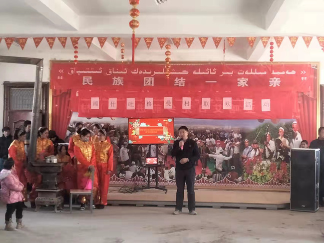 在亚喀艾日克乡亚喀艾日克村,1月31日,联欢活动在村便民服务大厅举行,亚喀艾日克乡党委副书记、乡长苏力坦·艾合麦提出席活动并致新年贺词,村“两委”干部、工作队成员及近200名村民参加活动。