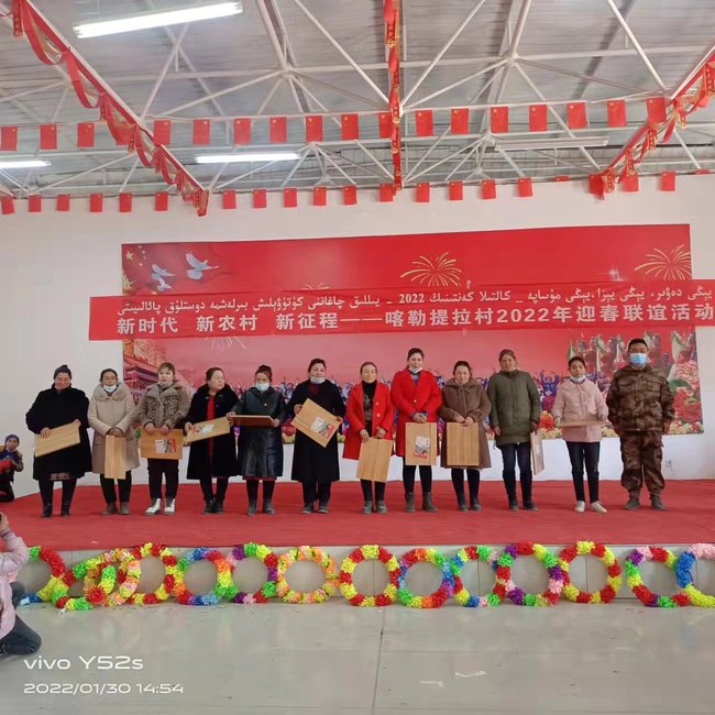 喀勒提拉村迎春联谊活动中给获奖选手颁发奖品