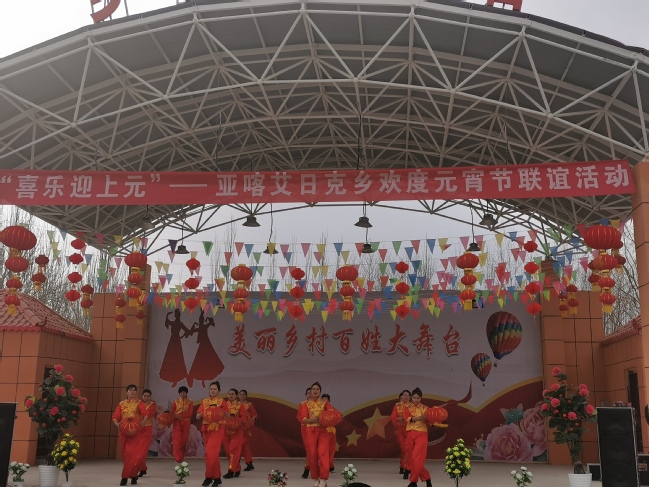 当天,亚喀艾日克乡还举办了“喜乐迎上元”元宵节民俗文化联谊活动。各村文艺表演队欢聚在亚喀艾日克村乡村大舞台,震天的锣鼓,威武的雄狮,欢腾的巨龙,优美的汉代舞蹈和充满活力的儿童舞,让初春的亚喀艾日克村呈现一派祥和氛围,村民们载歌载舞庆盛世,欢欢喜喜闹元宵。