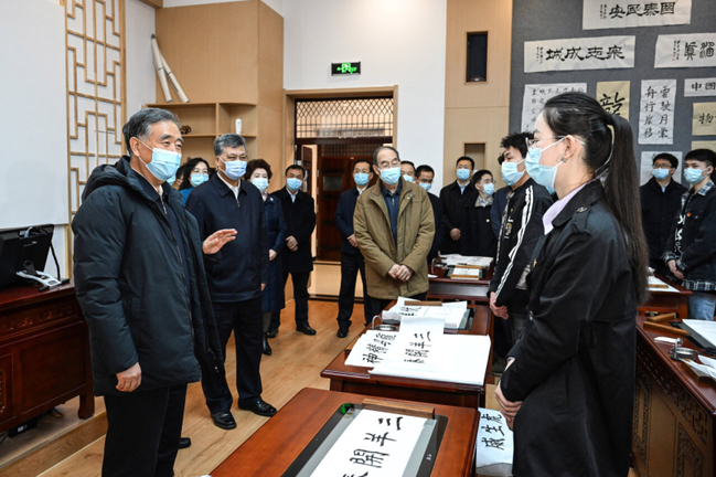 3月18日至22日,中共中央政治局常委、全国政协主席汪洋在新疆调研。这是3月19日,汪洋在88858cc永利官网就推动中华民族共同体研究、铸牢中华民族共同体意识进行调研。新华社记者 饶爱民 摄