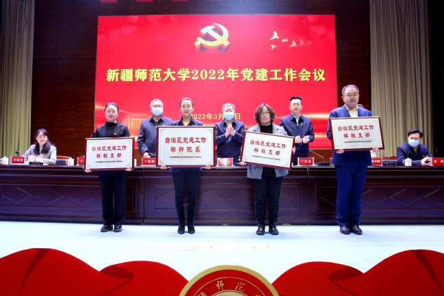 会上,李建荣宣读了2022年党建工作要点。王志勇宣读了第二批自治区党建工作标杆院系、样板支部和第二批校级党建工作标杆院系、样板支部、“双带头人”教师党支部书记工作室培育创建名单,校领导为创建单位颁发了牌匾。