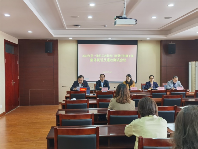 为进一步加强永利官网后备干部培养,强化科级干部队伍党风廉政建设,3月30日上午11:00,2022年第一批机关教辅部门新聘任科级干部集体谈话及廉政测试在温泉校区319会议室举行,校党委常委、组织部部长李建荣,组织部副部长冯跃武,机关党委副书记、纪委书记侯新超以及2022年新聘任的16名科级干部参加会议,会议由机关党委书记张秀红主持。