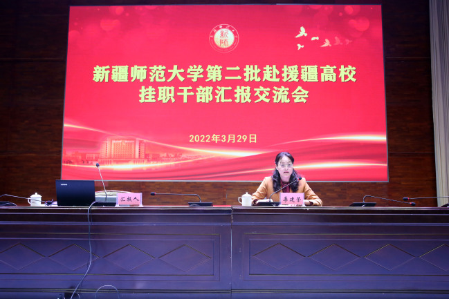 3月29日下午,学校第二批赴援疆高校挂职干部汇报交流会在昆仑讲堂召开,校党委书记葛国出席会议并总结点评,在家校领导和全体处级干部参加会议,校党委常委、组织部部长李建荣主持会议。