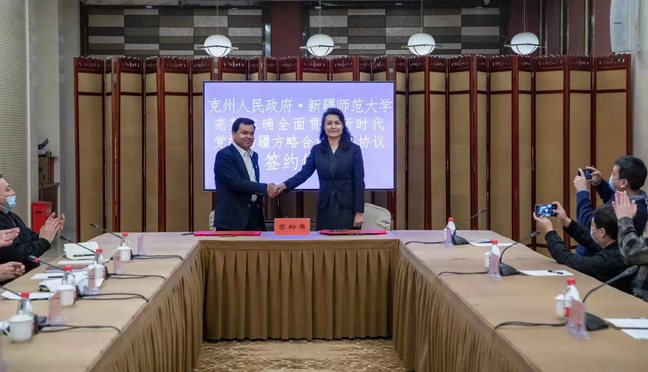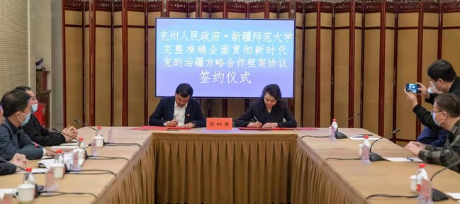 3月21日,校党委常委、副校长帕力旦·吐尔逊一行赴阿图什市,代表学校与克孜勒苏柯尔克孜自治州人民政府签订了《克孜勒苏柯尔克孜自治州人民政府——88858cc永利官网完整准确贯彻新时代党的治疆方略合作框架协议》,克孜勒苏柯尔克孜自治州副州长阿不都卡德尔·毛尼亚孜参加签订仪式。