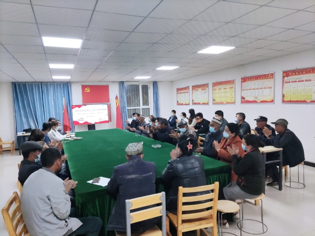 随后,亚喀艾日克村党支部书记、村委会主任库尔班·阿尤甫带领大家一起学习了两会报告中有关“三农”工作和乡村振兴的内容。亚喀艾日克村党总支副书记、工作队党支部书记阿不拉·玉素甫从与大家生活密切相关的内容入手,对两会报告进行了解读。他讲到,特殊年份中、复杂形势下举行的这次全国两会,开出了精气神、弘扬了正能量,营造出了继续保持平稳健康的经济环境、国泰民安的社会环境、风清气正的政治环境的良好氛围。从促进乡村全面振兴,到扎实推进共同富裕,再到持续改善生态环境,全国两会对发展全局作出新的安排部署。新的年景、新的征程、新的目标,正待我们鼓足干劲、争创一流,把步子迈准迈稳、迈出新成效。蓝图已绘就,重在抓落实,他希望广大党员干部要以饱满的热情、昂扬的斗志、充足的干劲,接续推进乡村振兴。
