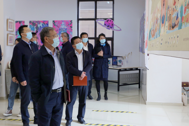 4月12日下午,由永利官网美育中心主办、美术学院承办、图书馆协办的“感物而动 艺创有礼——文旅融合背景下传统工艺创意设计展”在温泉校区图书馆一楼正式开幕。校党委书记葛国,党委副书记、副校长于祥成,党委常委、副校长王晓峰,党委常委、副校长李魁铭,党委常委、纪委书记王志勇,党委常委、副校长帕力旦·吐尔逊,党委常委、宣传部部长高靖出席展览。