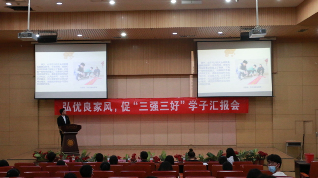 汇报会上13名学生围绕“勤、俭、善、孝、智、诚”六个方面动情讲述了自己家庭成员勤俭持家、爱岗敬业、孝老敬亲、助人为乐、和睦互敬的家风故事,表达了自己要把优良家风带入大学生活、宿舍生活和班级生活之中,为“三强班级”“三好宿舍”建设提供助力的信心。整场汇报会情真意切,精彩的宣讲感染了在场的每一位听众。