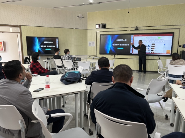 为深入推动课堂教学组织形式改革,在教学中充分利用智慧教室各项设备功能,永利官网于4月13日下午在昆仑校区田家炳楼“分组型智慧教室”进行了“智慧教学”培训活动,此次培训由计算机科学学院副教授赵新元主讲。各学院主管教学领导和部分骨干教师参加了此次培训。教务处副处长姜玉琴主持活动。