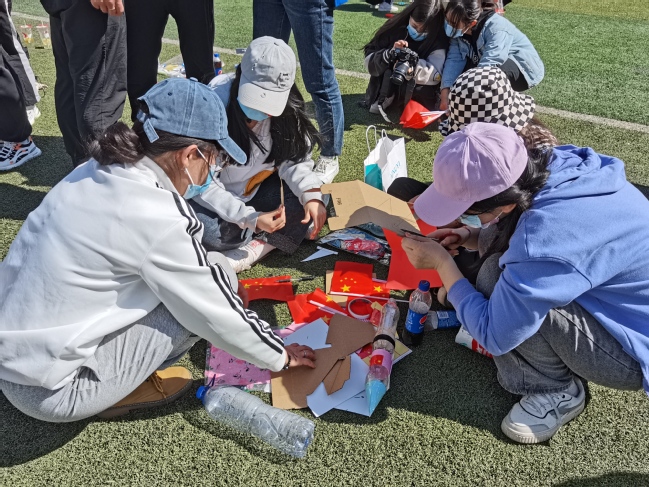 活动中,师生们展示了水火箭发射过程并讲解了其中的物理原理。“水火箭”又称气压式喷水火箭,大家利用生活中废弃的饮料瓶制作而成,灌入一定数量的水,利用打气筒充入空气达到一定的压力后,气压便会产生反作用力将火箭发射出去。随后,全体师生便跃跃欲试地动手制作起水火箭,体验一飞冲天的科普乐趣,以表达心中的激动之情。活动现场吸引了不少非物理专业学生的驻足观赏,大家纷纷加入到活动中来。