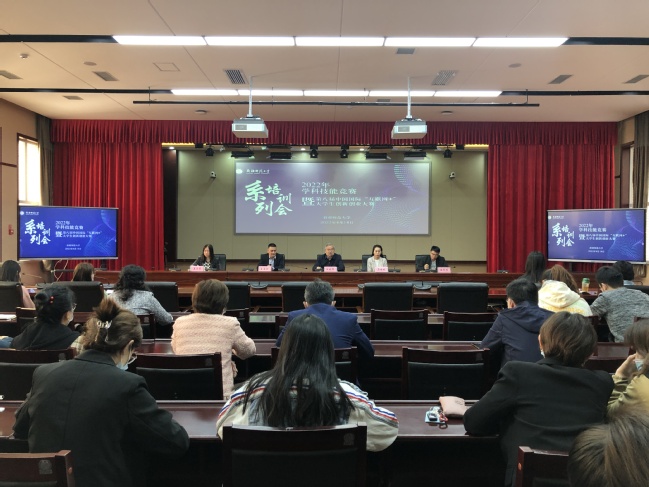 为做好“互联网+”大学生创新创业大赛的赛事宣传和参赛指导,提升教师赛事指导水平和学生参赛能力,进一步提高永利官网创新创业大赛参赛作品质量,4月14日上午,2022年学科技能竞赛暨第八届中国国际‘互联网+’大学生创新创业大赛培训会在行政楼二楼会议厅举办。教务处邀请乌鲁木齐启迪之星科技企业孵化器执行总经理马安然及公司创业导师主马什担任本次培训会主讲。校党委常委、副校长王晓峰出席培训会并讲话。各学院分管领导、系主任、项目指导教师及教务处相关负责人员在现场参会。会议采用线上线下相结合的方式进行,除了设置线下主会场,三校区百余名师生在线观看。培训会由教务处副处长姜玉琴主持。