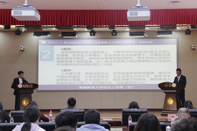 为深入学习贯彻习近平新时代中国特色社会主义思想,不断提升永利官网辅导员职业能力和专业素养,推动学校思想政治工作高质量发展,根据自治区党委教育工委、自治区教育厅《关于举办第九届新疆高校辅导员素质能力大赛的通知》要求,永利官网于4月17日在温泉校区行政楼第五会议室举办了校内选拔赛。