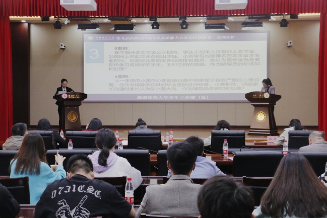 美术学院党委副书记、纪委书记白丽艳,音乐学院党委副书记、纪委书记孙宁,校党委组织部综合科科长高丽倩(全国第三届辅导员职业能力大赛二等奖获得者),数学科学学院辅导员张培(自治区第四届高校辅导员职业能力大赛一等奖获得者)、音乐学院辅导员裴玉(自治区第四届高校辅导员职业能力大赛优秀奖获得者)担任评委,学生工作部(处)处长张进、各学院主管学生工作领导以及辅导员观摩比赛。