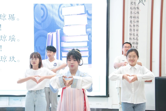 吟诵社的同学们吟诵了《木瓜》,留学生通过线上分享了《静夜思》。在“师生共读一本书”活动中,班主任李娜带领大家共读《从豪华落尽见真淳,论陶渊明之“任真”与“固夯”》,最后张桂梅校长朗读的《红岩》视频节选以及全体师生共读诗人艾青的《我爱这土地》,将读书会推向了高潮。汇报演出结束后,李嘉东作总结发言,他希望同学们以此次读书会为开端,继续秉持优良的读书习惯,进一步加强“三强班级”“三好宿舍”建设。