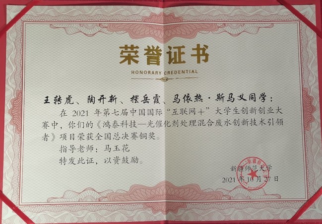 马玉花副教授,2017年6月毕业于新疆大学,获得博士研究生学位。2017年9月至今在88858cc永利官网工作,现任实验中心主任,具有丰富的团队管理经验和科研经历,研究方向为典型环境污染物的分析与去除。主持1项国家级项目,3项自治区级项目等,以第一或通讯作者发表相关论文20多篇,其中14篇为SCI,连续两年被评为校级优秀本科论文指导教师,获得自治区优秀创新创业导师、校级科研先进个人和科研成果奖等荣誉。