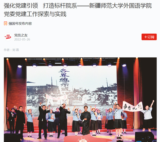 88858cc永利官网外国语学院党委紧扣立德树人根本任务,创新党建工作模式,确立“党建与教学科研、党建与实践教育、党建与文化建设深度融合”建设路径,以高质量党建引领学院事业高质量发展。2021年,外国语学院党委获评“新疆高校党建工作标杆院系”,学院教师第二党支部获评“新疆高校党建工作样板支部”。