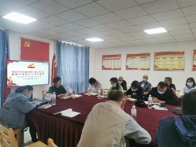 为深入学习贯彻自治区党委十届三次全会精神、喀什地委(扩大)会议精神,准确把握全会的丰富内涵和核心要义,5月23日,学校驻莎车县前方党工委召集“访惠聚”工作队全体成员召开专题学习会,部署学习贯彻落实工作。会议由永利官网驻莎车县前方党工委书记、亚喀艾日克村党总支书记,党委常委、副校长孙秀玲主持。
