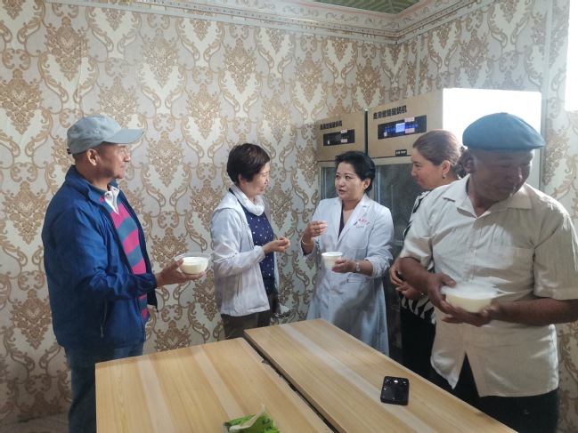 庭院老酸奶手工作坊负责人村民吾舒尔•哈孜说:“我们从心底感谢党和政府的好政策,感谢工作队和努尔古丽教授能选择我们家作为技术试点。我们一定会好好珍惜这个机会,认真学习科学技术,不辜负工作队和老师们的选择和付出,用心做好每一份酸奶。”