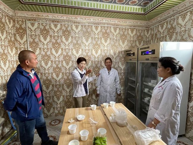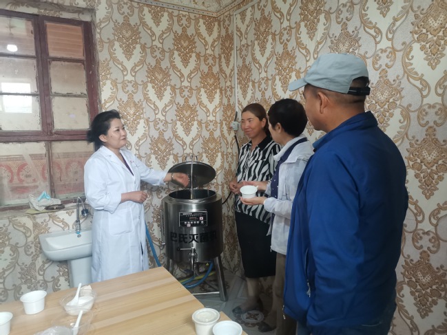 为带动村民就地就近就业创业,做好“产学研”结合,助推家庭式农产业发展,由孜热甫夏提乡英迈里村工作队牵头,自治区科学技术协会和88858cc永利官网联合资助的英迈里村庭院老酸奶作坊正式投入使用。努尔古丽·热合曼教授通过积极争取自治区科协科技服务基层项目,在英迈里村村民吾舒尔·哈孜家定点开展庭院老酸奶产业培育。为其配备一次能生产50公斤酸奶的设备:酸奶机2台、消毒机1台、冷藏陈列柜1台,还有温度计、一次性酸奶杯等用品,在技术上培养村民酸奶制作工艺,提高产出效益、扩宽致富门路。