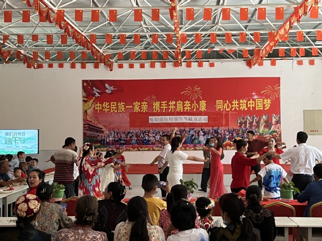 在孜热甫夏提塔吉克民族乡喀勒提拉村,端午节当天,驻村工作队与村委会联合举办了“粽叶飘香迎端午、民族团结话情深”联谊活动。