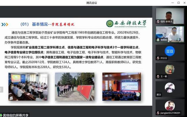 “格致博士讲坛”优秀校友黄晓俊副教授对西安科技大学通信与信息工程学院进行介绍,并就电子专业考研开展交流分享