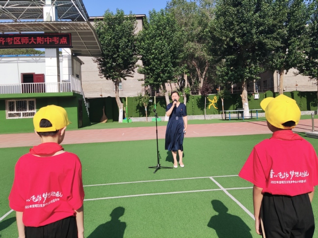 7月5日上午,在附属中学校园举行了夏令营开营仪式,附属中学全体校领导,师大校团委书记陆娇、党委组织部五项办主任蔡永亮、大学生志愿者、全体授课教师参加了仪式。开营仪式在雄壮的国歌声中拉开序幕,全体学生进行国旗下宣誓,附属中学党委书记吕志新进行开营致辞,他代表附中5000名师生,对不远千里来到天山脚下参加夏令营活动的师生表示热烈的欢迎,他对孩子们提出几点具体要求:希望同学们能够珍惜来之不易的学习机会,增强安全意识,严格遵守疫情防控要求,遵守夏令营各项管理制度,锻炼自己,学会与人和睦相处,学到更多的知识,懂得更多的道理,快乐地度过一个丰富多彩的、充实的、有意义的暑假,为自己的人生留下美好回忆。