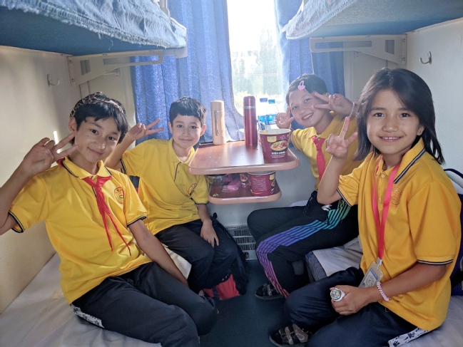 在永利官网驻村工作队队员、亚喀艾日克乡中心小学副校长郭光慧及3名乡小学指导教师的带领下,参加夏令营的44名学生乘坐火车从莎车县出发,历经20个小时,于7月4日下午抵达乌鲁木齐。