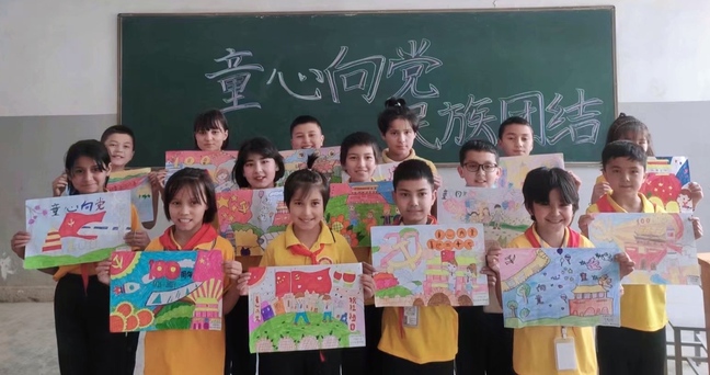 为迎接党的二十大胜利召开,深入贯彻落实习近平总书记关于铸牢中华民族共同体意识的重要思想,学校驻莎车县前方党工委与共青团上海市委合作交流部联系,协调亚喀艾日克乡中心小学与上海市进才实验小学开展“喜迎二十大 童心爱中华 永远跟党走”主题云团、队课活动。近日,主题团、队课活动视频在网络展播。展播期间,亚喀艾日克乡中心小学组织学生进行了集体观看。