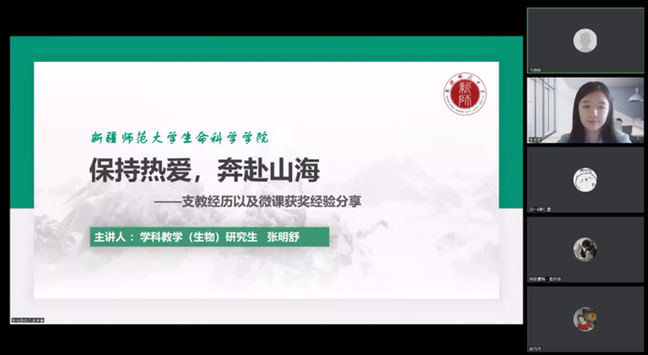 为进一步提升师范生教学技能,充分调动师范生参加各级各类教学技能比赛的积极性和主动性,生命科学学院结合秋季2020级师范生实习支教工作于8月20日下午开展了师范生教学技能大赛赛前培训暨2020级师范生实习支教行前动员。此次活动采用线上方式进行,由生物科学系主任马晓林主持。