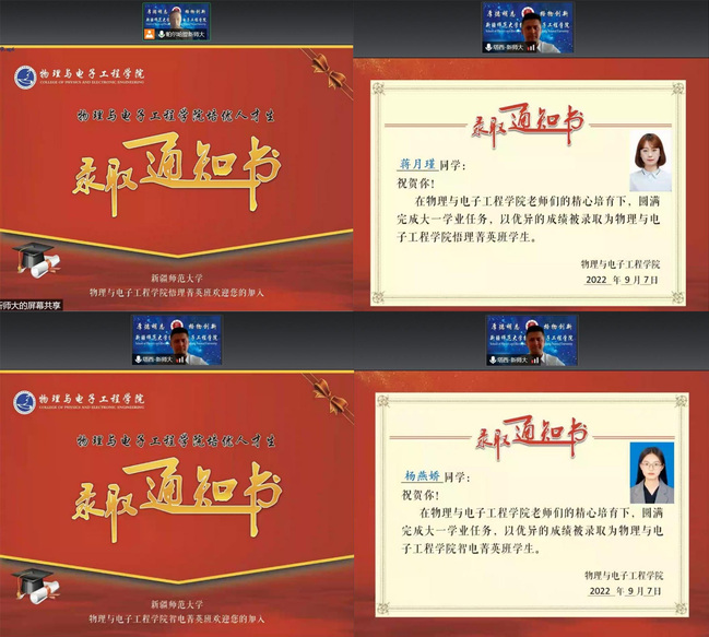 仪式还特意安排了云端发放培优人才生电子录取通知书环节,制作精美的通知书和独特的呈现方式赢得了师生们的纷纷赞誉,浓浓的仪式感强化了学生的荣誉感和归属感,增强了学生的自信心和导师们的责任心。