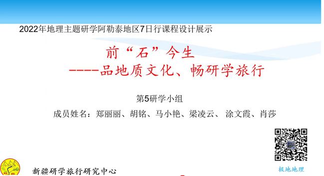 “阿勒泰地理学课程设计展示”环节,由乌鲁木齐市第56中学教师秦春燕主持,乌鲁木齐市及克拉玛依市中学的带队教师分别代表小组展示了“地寻中草药,理看桦树林,探秘陨石堆”“研红色阿勒泰,学众人之所长”“游天上人间;品图瓦䪨味”“追忆红色岁月,弘扬兵团精神”“前‘石’今生——品地质文化、畅研学旅行”“探寻富饶功勋矿、绘就绿色发展蓝图”等研学课程设计。汇报精彩纷呈,课程设计生动活泼,将课堂讲授的知识点融于研学活动中,既丰富了课堂形式,又提升了学习效果。