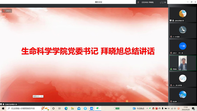 最后,生命科学学院党委书记拜晓旭作总结讲话,他指出,卓越师范生是针对中学教育改革发展对高素质教师的需求,培养一批信念坚定、基础扎实、能力突出的国家教育事业改革和建设的优秀人才。在学校领导及各级部门的关怀指导下,在学院及各位老师的精心培育下,希望此次选拔的32位学生能够生根发芽,茁状成长,结出丰硕果实。