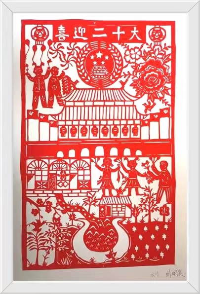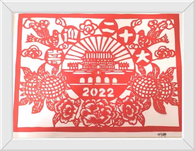 剪纸作品二等奖《喜迎党的二十大》(邢怡静 汉语国际教育22-1班)