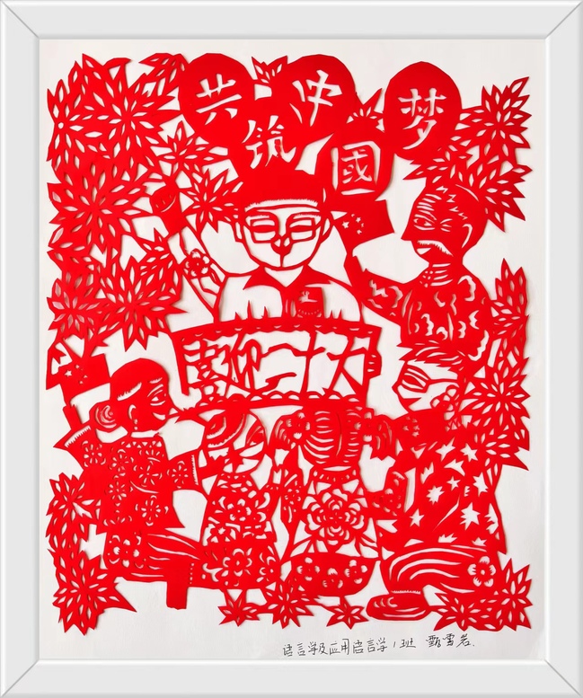 剪纸作品二等奖《喜迎二十大——共筑中国梦》(甄雪岩,语言学及应用语言学硕士2022级1班)