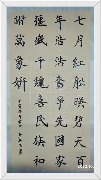 书法作品一等奖《喜迎二十大》(王子璇,汉语国际教育22级3班)