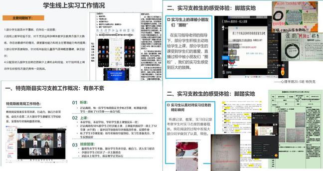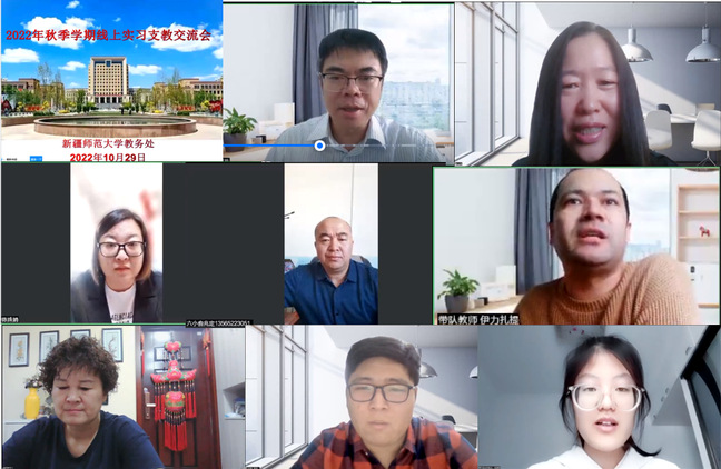 和田市古江巴格乡特根拉中学校长陈姝娟、特克斯县第六小学书记俞兆定分享了学校线上实习支教管理经验,充分肯定并高度评价了永利官网实习支教学生知识基础和教学能力以及实习生为保证线上教学质量所付出的努力。