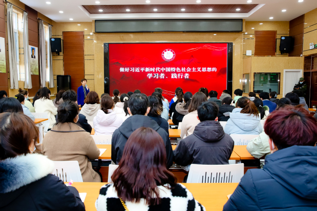 孙秀玲通过主讲人与学生互动问答,引出专题讲授“做好习近平新时代中国特色社会主义思想的学习者、做好马克思主义中国化的时代传播者、做好中国共产党人精神谱系的传承者”等内容,点明“努力成为堪当时代重任的栋梁之材”的课程主题。