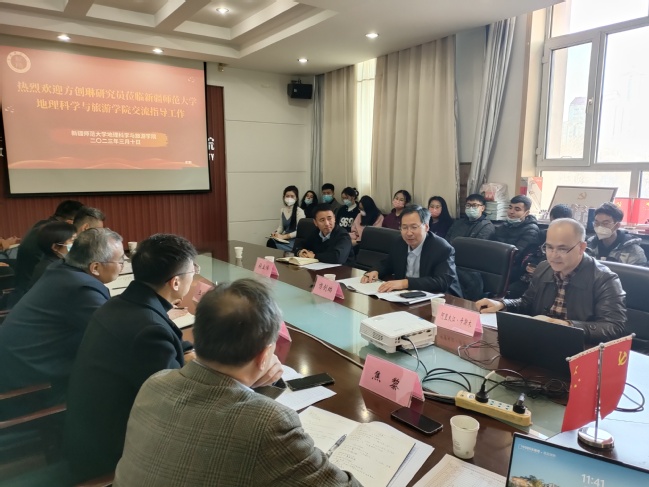 地理科学与旅游学院副院长张立伟教授就2023年国家自然科学基金申报情况做了汇报,方创琳充分肯定了教师们的科研成果,同时鼓励大家大胆申报重点、重大项目,迈出突破性的关键一步,并积极与相关政府部门、科研院所寻求合作,扩大影响力,拓宽科学研究渠道。