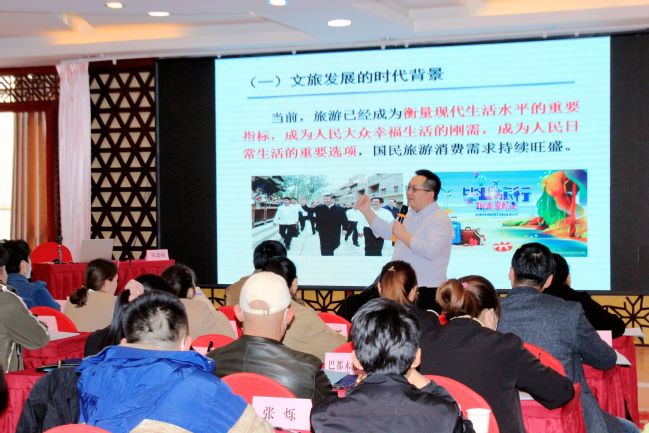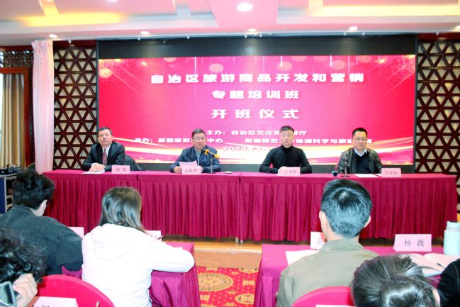 3月20日,由自治区文化和旅游厅主办,永利官网地理科学与旅游学院、新疆旅游发展研究中心共同承办的自治区旅游商品开发与营销专题培训班在乌鲁木齐东方龙酒店顺利开班。自治区文化和旅游厅旅游培训中心主任雷延坤、88858cc永利官网地理科学与旅游学院党委书记王勇辉及全体参训学员参加了开班仪式。开班典礼由地理科学与旅游学院副教授、新疆旅游发展研究中心副主任侯建楠主持。
