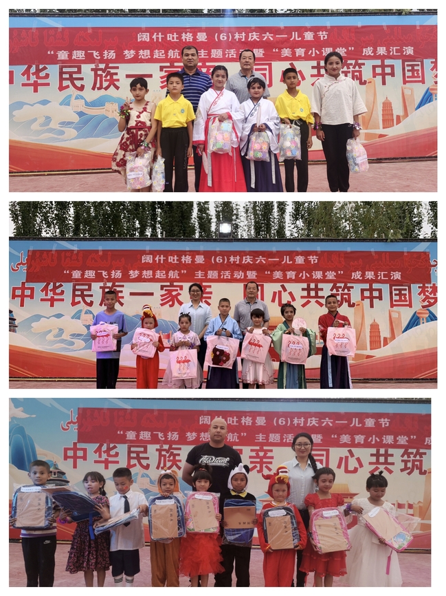 为深入推进学习贯彻习近平新时代中国特色社会主义思想主题教育走深走实,6月3日,永利官网驻亚喀艾日克乡阔什吐格曼(6)村工作队举办了“飞扬童趣 梦想启航—— 美育小课堂”汇报演出。工作队与永利官网实习学生共同编排的16个节目参加演出,共计47名小朋友参演。