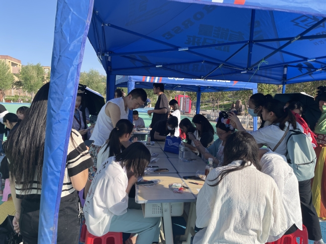 为推动学习贯彻习近平新时代中国特色社会主义思想主题教育走深走实,传承弘扬中华优秀传统文化,丰富校园文化生活,让全校师生更直观地了解端午节,感受传统节日丰富的文化内涵,激发爱国主义情感与文化自信,6月18日,由校图书馆和校团委联手主办的“国风雅韵·仲夏端午”汉服游园活动,在温泉校区立行广场隆重举行。